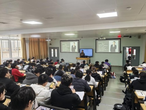 11月21日下午,学院在望江校区东三教150教室和基教C101教室成功举办了主题为“研路共赴·逐梦前行”的2027届考研专题宣讲会。本次活动特邀新东方成都中心的肖磊老师担任主讲人,学院2023级全体同学参加了此次讲座。宣讲会由2023级辅导员许元军老师主持。