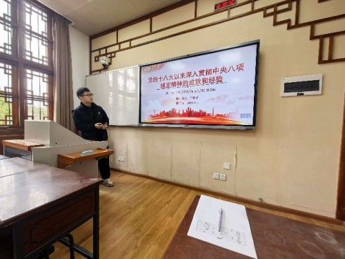 本次分享会特邀物理学院2024级硕士研究生邓家豪担任主讲嘉宾。邓家豪同学结合自身学习与成长经历,围绕“党的十八大以来贯彻中央八项规定精神的成效与经验”展开讲解,深入浅出地阐述了八项规定精神在作风建设方面的重要意义和现实指导作用。