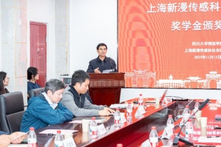 11 月 13 日下午,四川大学物理学院 103 会议室暖意融融,2025年度上海新漫传感科技奖学金颁奖仪式顺利举行。上海新漫传感科技有限公司董事长兼总经理蒋宏伟、销售总监王志皓、人力资源总监金玲等企业嘉宾,学院党委书记严成辉、党委副书记张波、副院长齐建起、青年教师王忠海等出席。颁奖仪式由党委副书记张波主持。