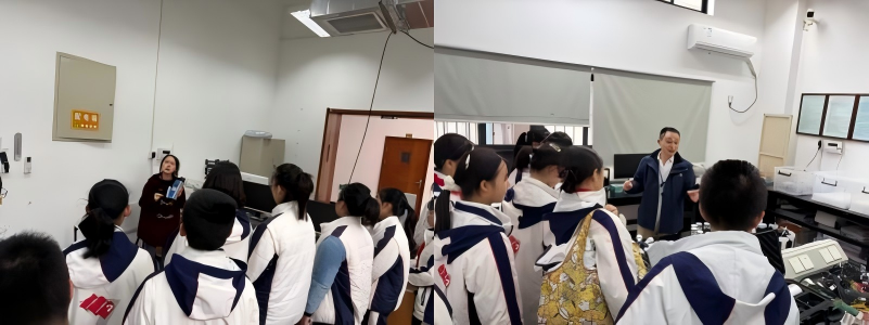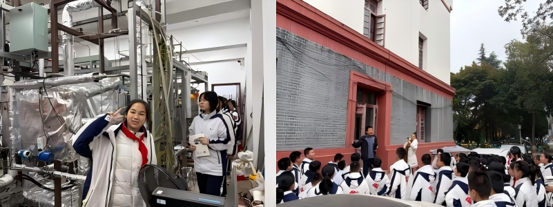 在热工实验室中,各类精密实验设备静静陈列,仿佛在诉说着物理的奥秘。同学们在学院教师的引导下驻足观察、踊跃提问。抽象的理论在具象的仪器中变得生动可触,科学的种子在好奇的目光中悄悄萌芽。