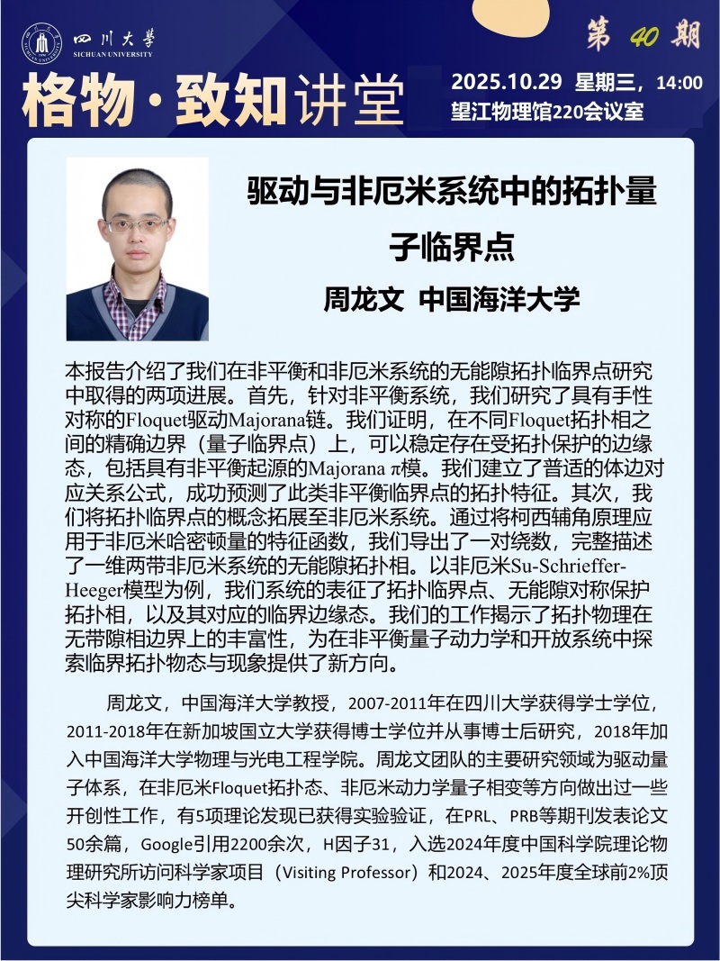 【学术报告】格物·致知讲堂第四十期(2025年10月29日)