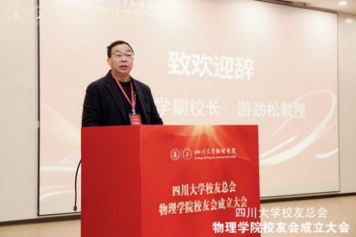 游劲松副校长代表学校致欢迎辞,向远道而来的各位院士、校友和嘉宾表示热烈欢迎,对物理学院校友会的成立表示热烈祝贺。他指出,校友是学校最宝贵的财富,校友会的成立将进一步搭建母校与校友、校友与校友之间沟通协作的桥梁,为学校“双一流”建设和物理学科高质量发展注入强劲动力。