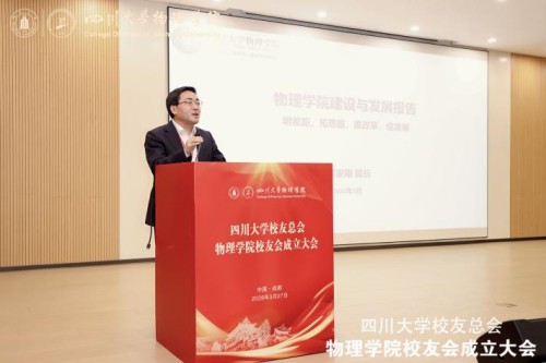 2026年3月27日,四川大学校友总会物理学院校友会成立大会在四川大学隆重举行。2026年恰逢四川大学建校130周年、物理系建系100周年,本次大会是物理学院回顾百年办学辉煌、凝聚校友力量、共谋未来发展的重要盛会。中国工程院高洁院士,中国科学院赵红卫院士,四川大学副校长游劲松教授,四川大学校友总会秘书长杨光教授,四川大学物理学院党委严成辉书记,物理学院院长吴家刚教授等领导嘉宾,以及来自全国各地的政界、学界、企业界校友代表齐聚一堂,共同见证这一历史性时刻。
