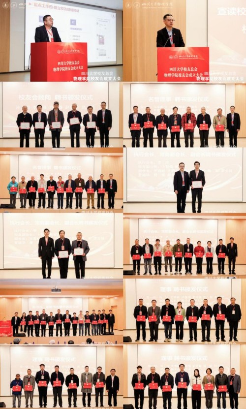 大会最后宣布,四川大学校友总会物理学院校友会成立暨物理系建系100周年庆典活动正式启动。全体师生校友将以校友会成立为新起点,传承百年物理精神,凝聚各方智慧力量,携手并肩、砥砺前行,奋力谱写四川大学物理学院高质量发展新篇章,为国家科教事业繁荣与科技强国建设作出更大贡献。