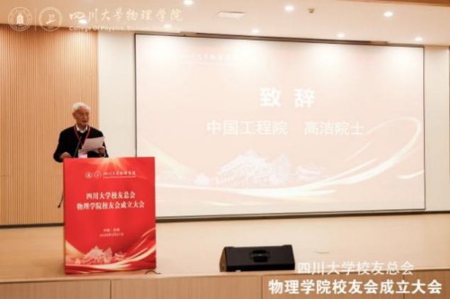 中国工程院高洁院士在致辞中,结合自身成长历程分享了两则动人故事,深情回顾了与川大物理的深厚渊源,以自身经历寄语物理学院坚守科研初心、深耕基础研究,在科技创新道路上勇攀高峰。